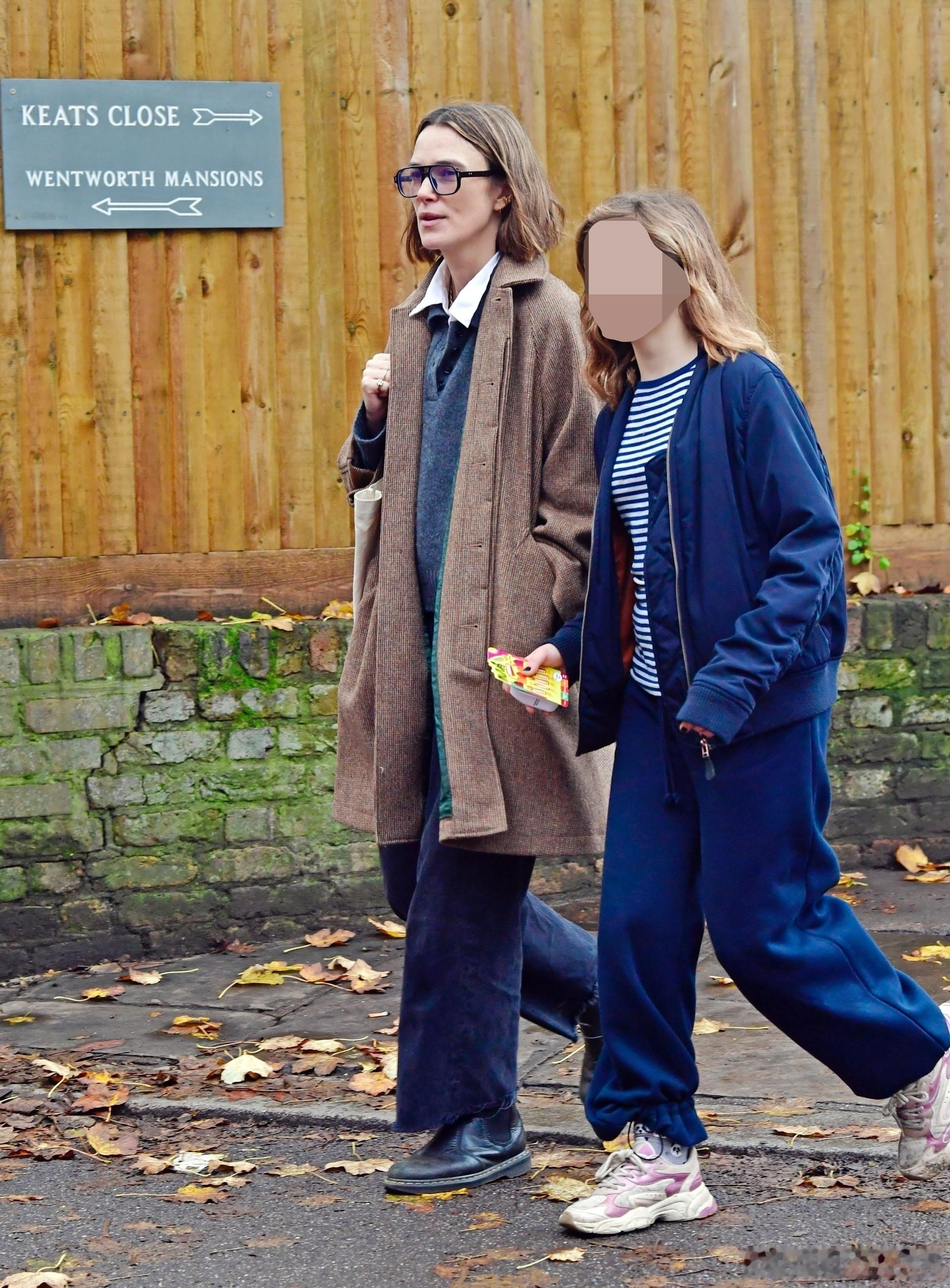 凯拉奈特莉和老公James Righton詹姆斯莱顿带着女儿在伦敦外出,10岁的