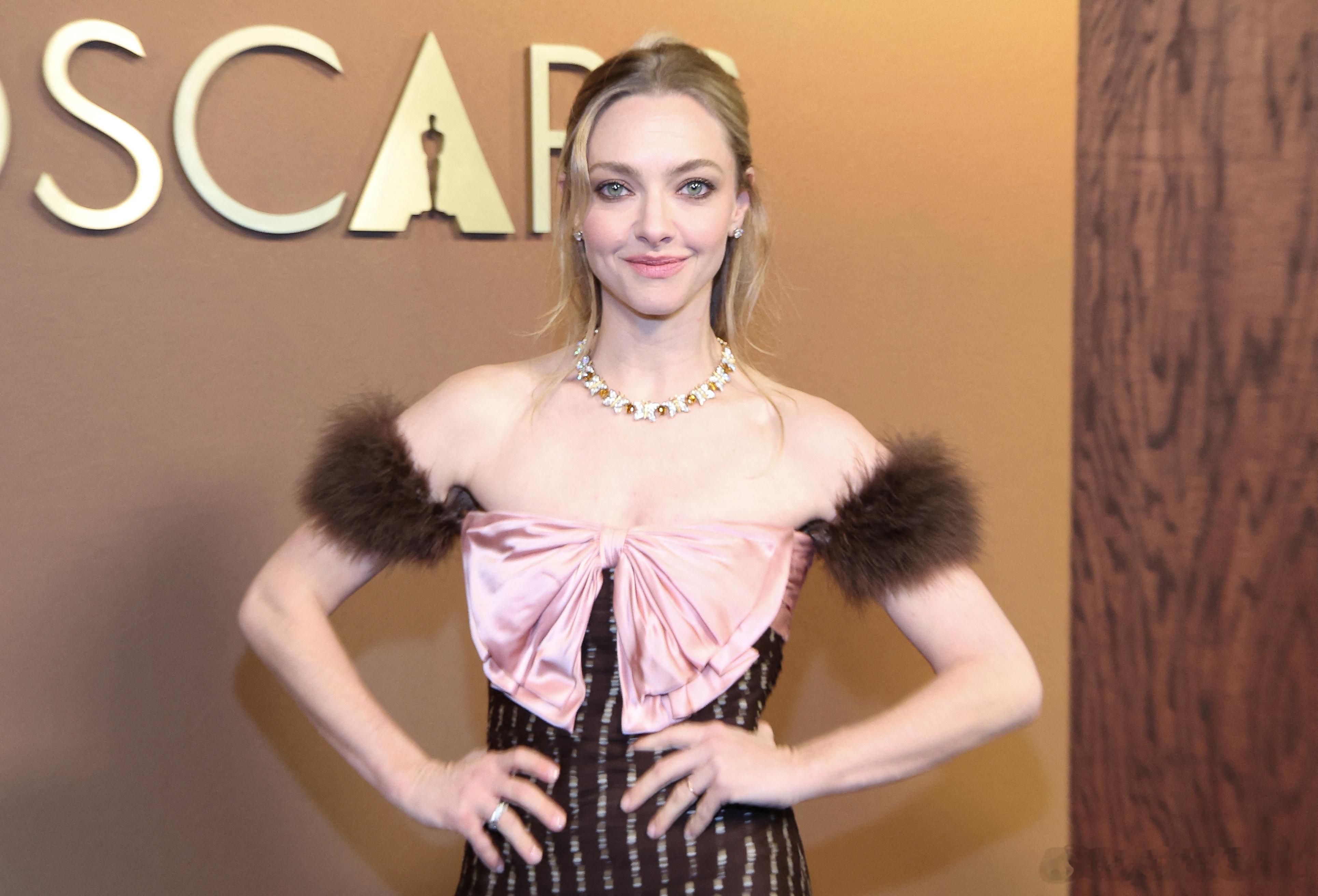 阿曼达塞弗莱德在洛杉矶出席16届奥斯卡理事会奖颁奖礼,这套像份礼物一样可人