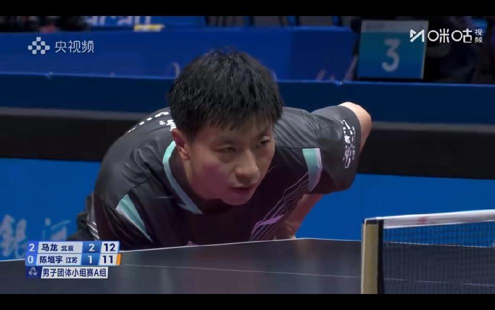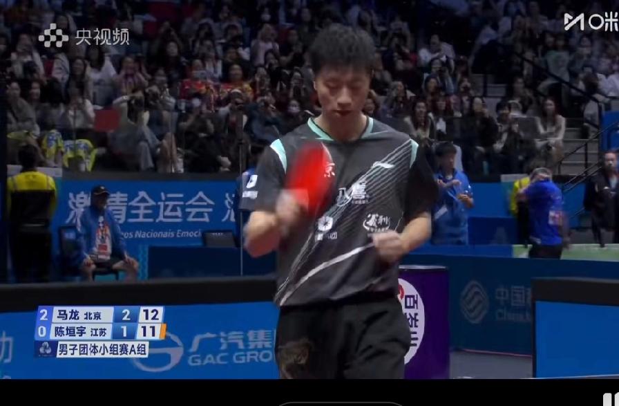 全运会乒乓球团体赛, 今天北京队对战江苏队, 三盘比赛马龙上场打了两盘, 一盘是带着弟弟打双打, 第三盘是3:1战胜陈垣宇, 北京队3:0江苏队, 小组赛中第一。 晋级淘汰赛了。 恭喜马龙, 这么长时间没有打比赛, 却还是那么厉害。