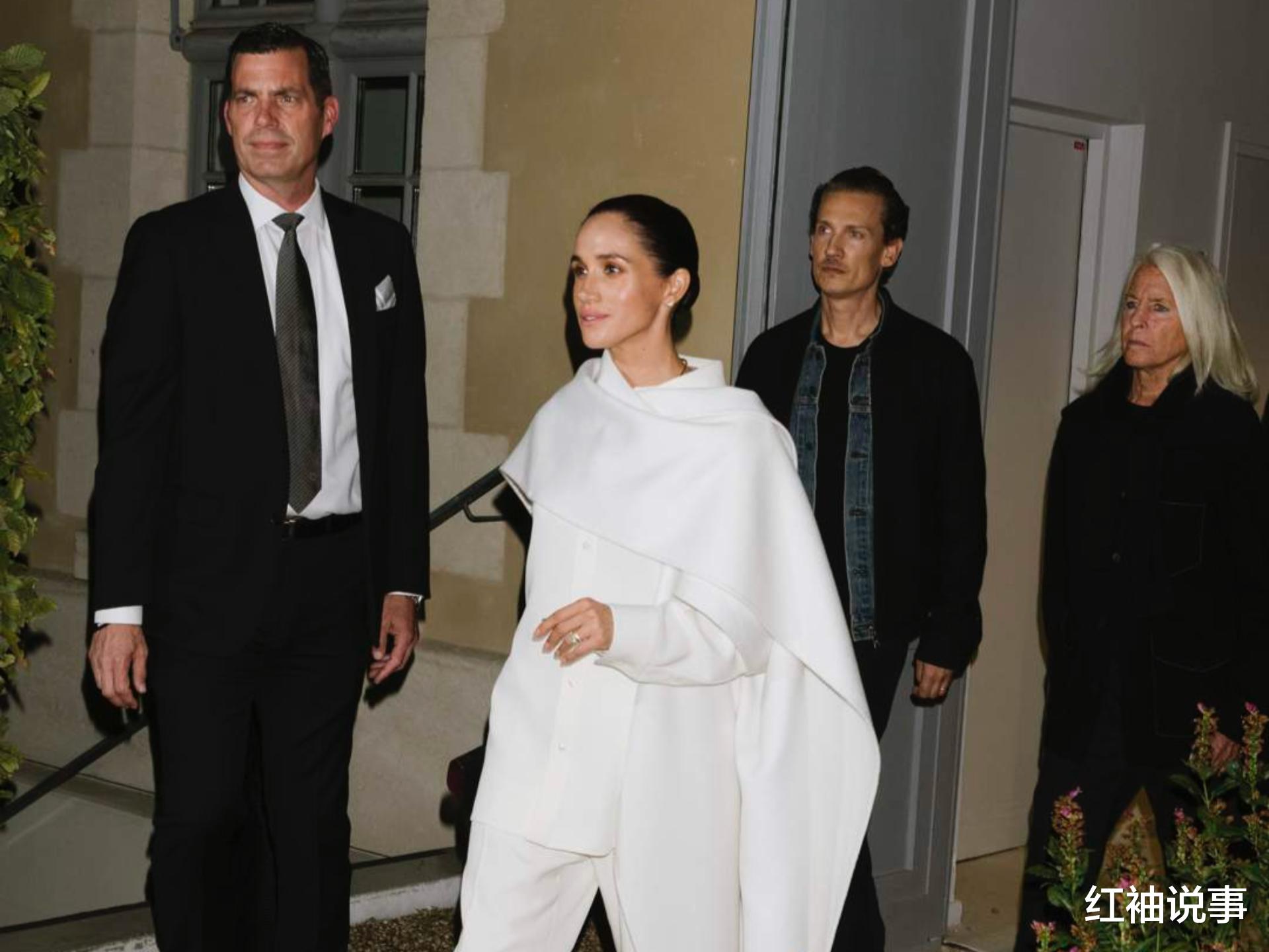 在星光璀璨的秀场,梅根与《时尚》杂志全球编辑总监,Anna Wintour(安娜·温图尔),及电影导演Baz Luhrmann(巴兹·鲁赫曼)亲切问候。公爵夫人在Instagram上宣布抵达巴黎时,穿的是白色阔腿裤搭配同色西装外套,再配以黑色尖头高跟鞋与低发髻,造型简约而不失时尚感。