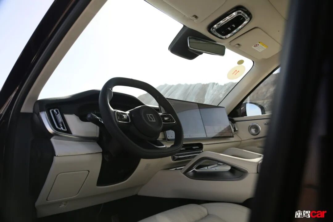 再往深一点走,底盘开始成为主角。双腔空气悬架、CCD电磁减振器以及主动稳定杆,这些硬件并不是重点,重点是它们被统一调度之后的状态 。在连续起伏的非铺装路面,车身不会被动应对,而是提前完成姿态调整。你甚至会产生一种错觉——不是路在变化,而是车在主动适应路。这种体验,很接近高端机械与智能系统融合之后的结果。简单说:它不是“很稳”,而是“很聪明”。