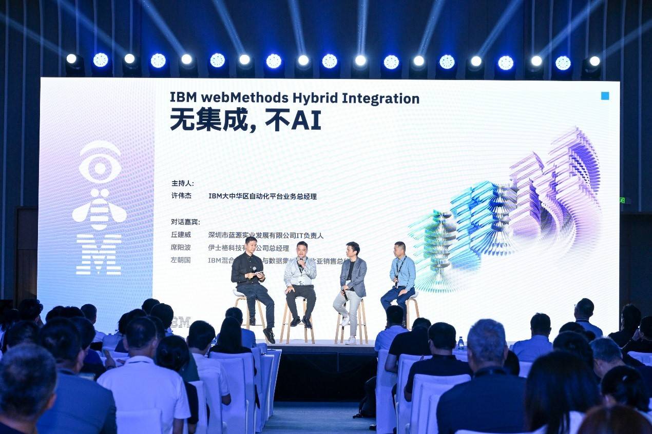 本次圆桌会议由IBM大中华区自动化平台业务总经理许伟杰主持,伊士格科技有限公司总经理席阳波、蓝源实业发展有限公司IT负责人丘建威,以及IBM混合集成平台业务北亚销售总监左朝国共同参与,围绕“无集成,不AI”这一核心主张,从企业实际业务场景出发,深入剖析了在数字化进程中普遍存在的系统割裂、数据孤岛及生态协同难题,并分享了基于IBM webMethods与伊士格科技联合解决方案的成功实践。