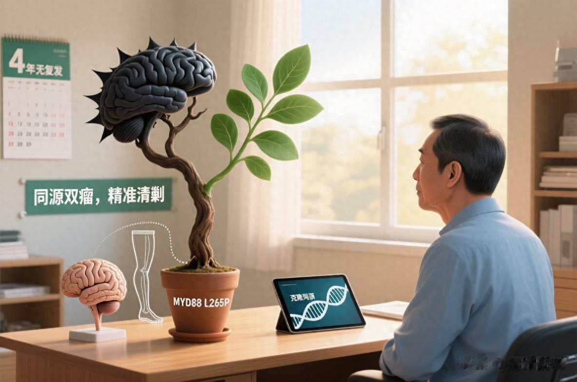 效果显著: R-MPV方案对脑内的PCNSL非常有效,脑部病灶在第五个疗程后大幅缩小,最终达到完全缓解 。问题所在: 但这种方案对腿部低级别的LPL/WM效果却不理想。腿部肿瘤仍在,导致王先生的下肢水肿症状依然严重 。考虑到这两种肿瘤“同根生”,并且低级别的LPL/WM细胞可能成为未来脑部肿瘤复发的“种子” ,医生决定采取**“联合清剿”**的策略 :