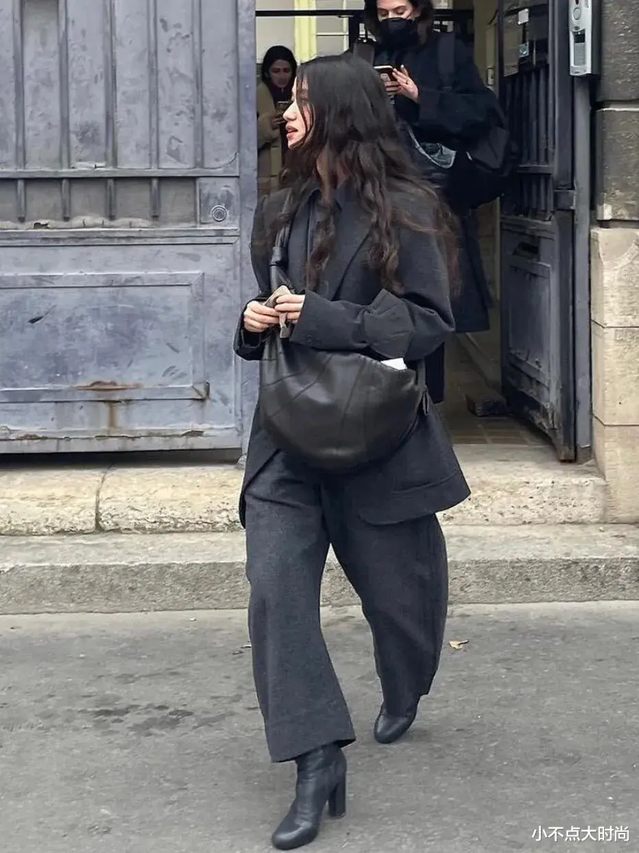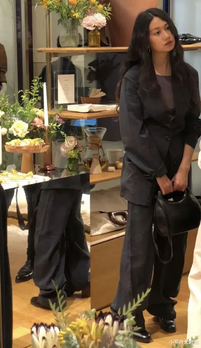 比如炭黑色的西装套装,减少了黑色的低调凛冽,多了几分低调的文艺高级感。▼