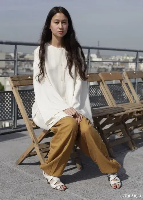 奶白色的宽松上衣,搭配大地色系的阔腿裤,一整套清淡又自然,温和疏离又文艺的气质。▼