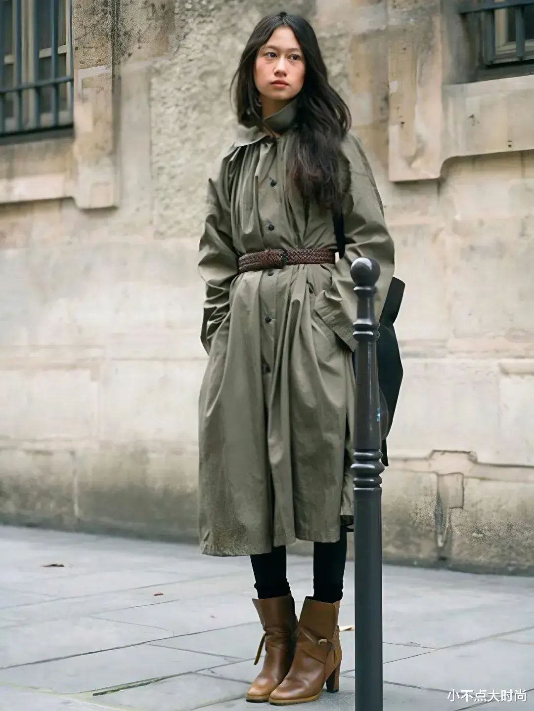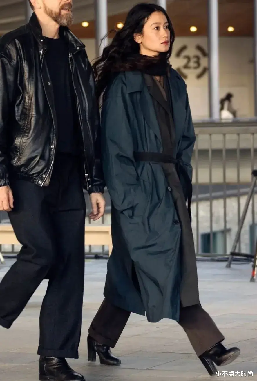 穿着经典挺括的风衣,选择微微宽松的版型来弱化风衣的硬朗,又用随意扎起的腰带来保持干净利落的显高效果。▼