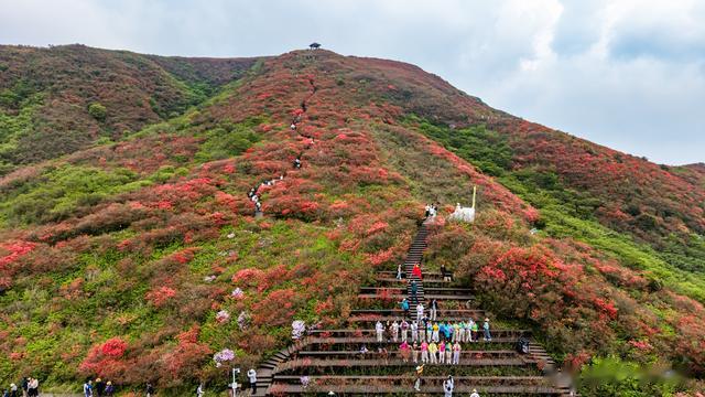 深浅不一的红,层层叠叠,远看如燃烧的云霞,近观似繁星坠地。山风掠过树梢,整片花海随之翻涌,花浪推着花浪,从这座山头涌向那座山头。