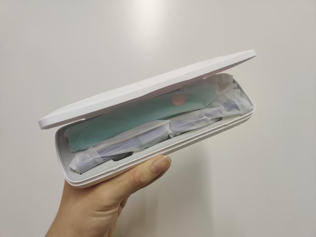 然后打开包装之后就能看到一个类似眼镜盒的小盒子,里面就是装着牙刷和刷头,这个小细节给好评,很好的保护了牙刷和刷头在运输中遇到的碰撞问题,防止了运输途中的破损。同时它还是一个旅行盒,可以解决出行带洗漱用品的问题。