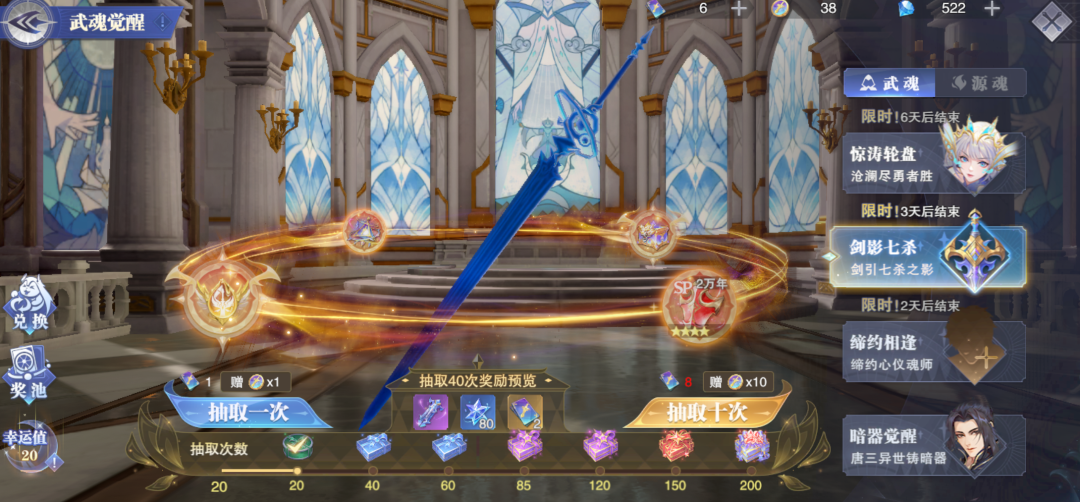 1、666x2x3=60张七杀券2、30Rx1=6张七杀券3、68Rx1=10张七杀券4、每日累充满30R送x1=2张七杀券5、累抽150次送=14张七杀券6、每日累充满30R送x3=2x3=6张七杀券7、88钻石x68=68张七杀券(30R和68R礼包买完出现)共计160张七杀券,200抽,花费=98R+9980钻石钻石不够,可以每日把30R、68R礼包和限购1次的60R礼包买完,花费=354R+5052钻石顺手拿到5个器源,差器源万仞之心;拿到食神左腿专骨。