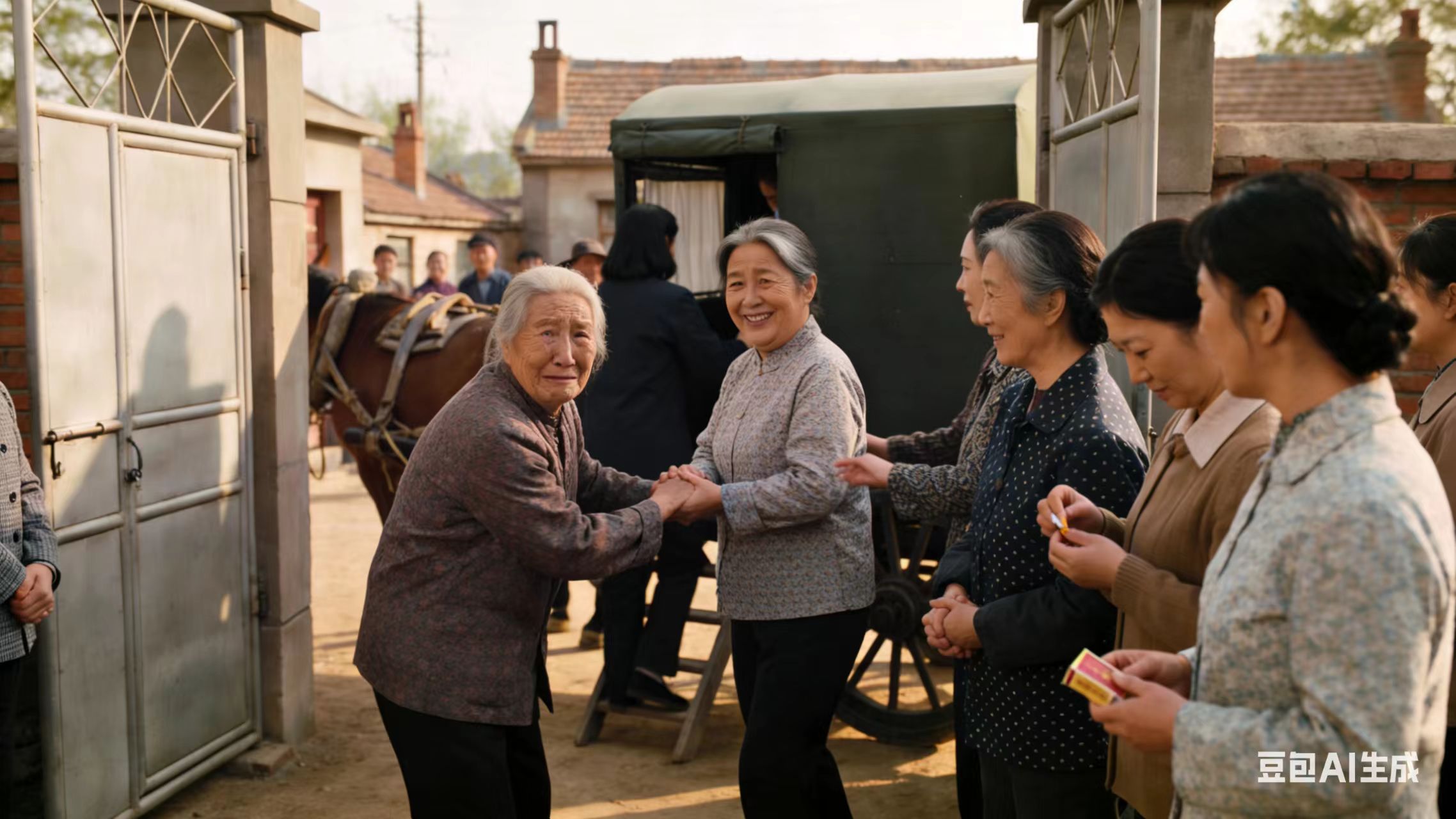 今日二姑要回家了,我们一大早就同时起来做准备,老姑和三姑也陆续到了。吃了早饭,天还早,全家都忙忙碌碌,将东西大包小裹的搬上车,然后一直出了门,一行人在车后缓行。因奶奶蹒跚地向即将走出院门的二姑追来,她跟头把式地握住二姑的手时,早已经老泪纵横,泣不成声地说道:“这辈子……再见不着面了。”二姑虽然也很激动,她掩饰着极不易察觉的泪眼,强作笑颜:“妈,别这么说,别哭!再过四年我还回来看你!”随即握了握奶奶的手,转身大步上了马车。