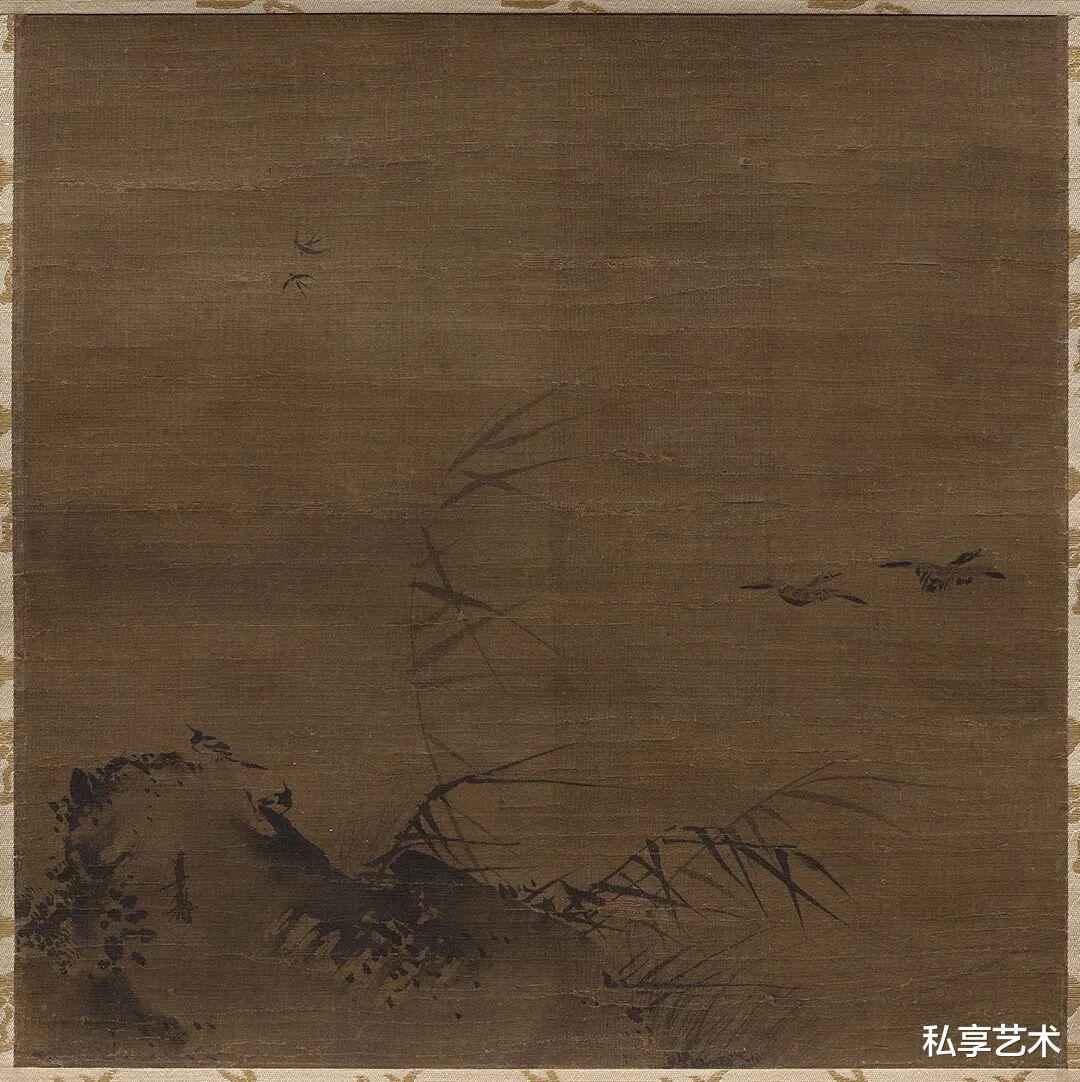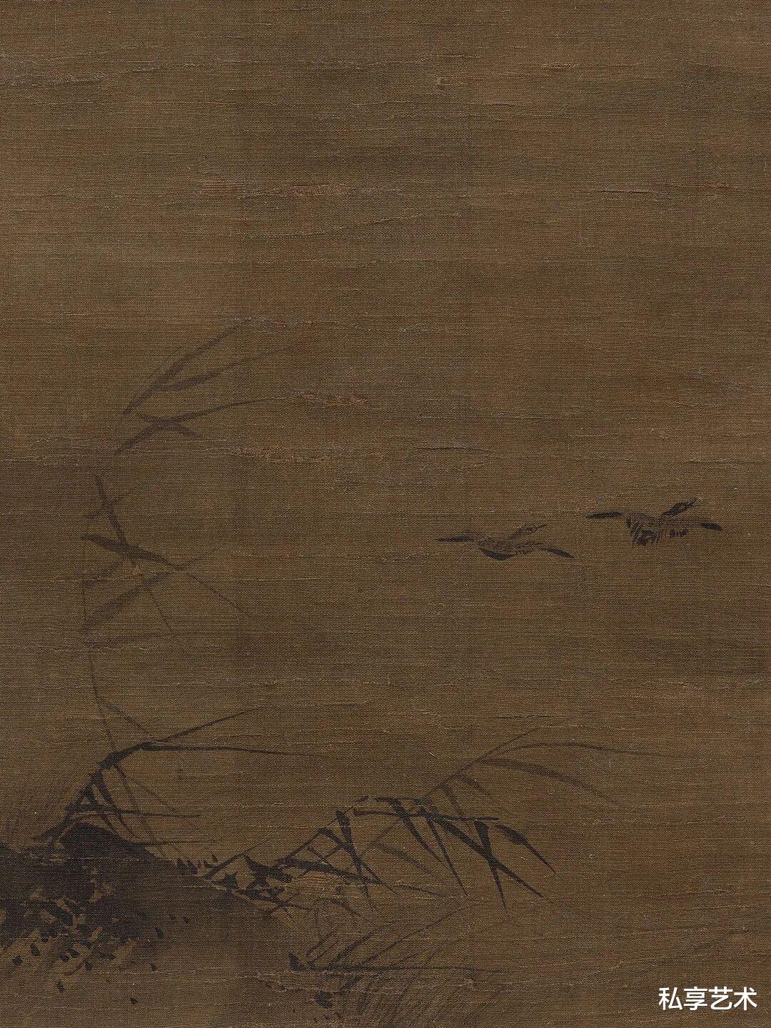 留白与淡墨对比,呈现深秋暮色的苍茫感,画面虽小却意蕴无穷,暗含文人“萧条淡泊”的审美趣味。