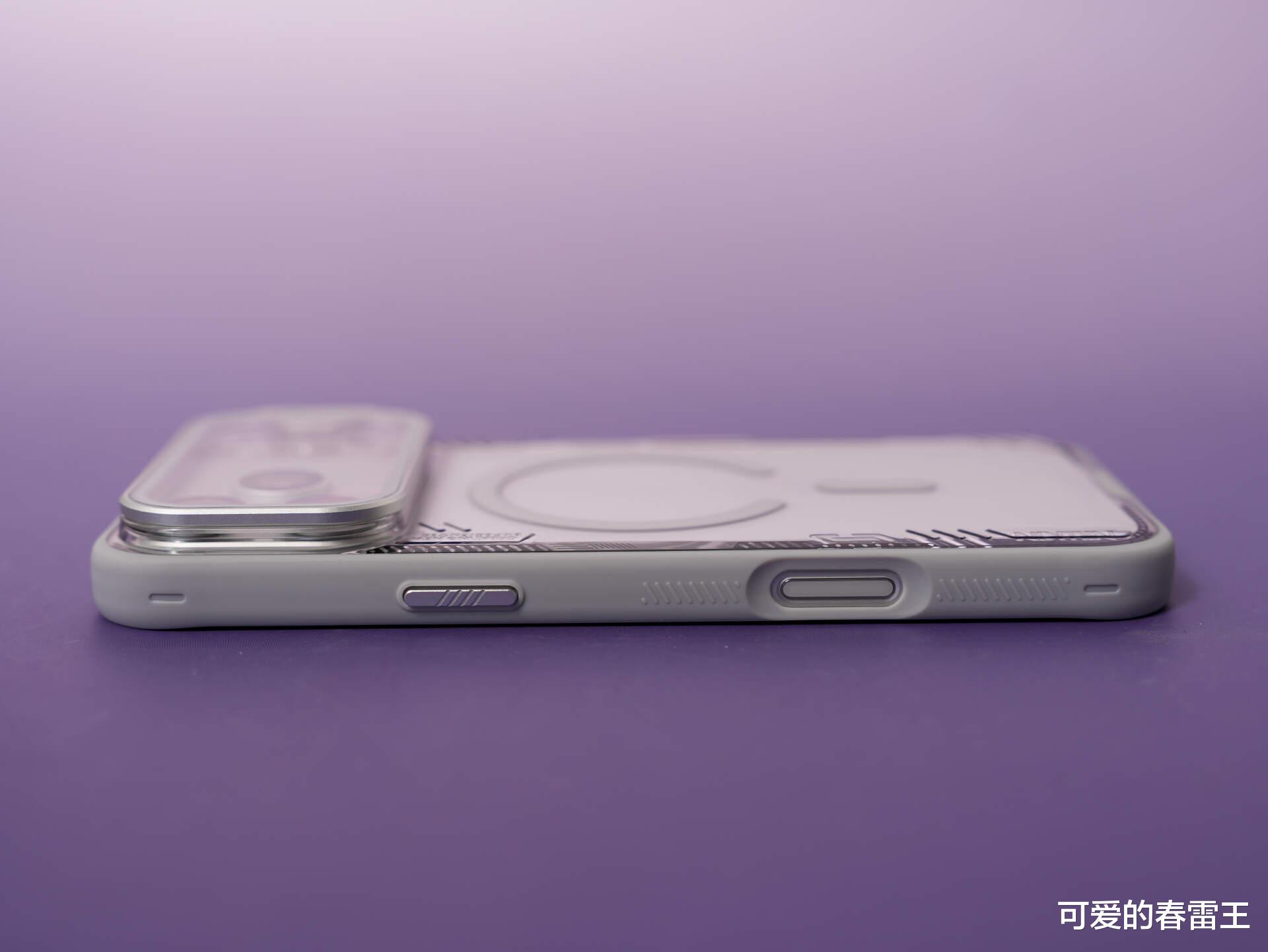 手感与分量:它不轻,56克的重量套在手机上,存在感清晰但绝不累赘。背板是新型生物基PC,触感硬朗冰凉,侧边包裹的TPU则带有细密的3D机械纹,防滑性很好,出汗的时候也不会滑手。