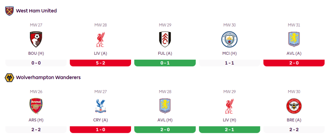 两队历史交锋呈现两极分化态势。近6次交锋,狼队取得5胜1负的战绩,本赛季首回合交锋中,狼队主场3-0完胜西汉姆联,心理层面占据一定优势。但值得注意的是,西汉姆联主场对阵狼队有着明显的心理优势——近5次主场面对狼队,西汉姆联全部取胜,且队长鲍文在这5场比赛中打入5球,堪称“狼队克星”。
