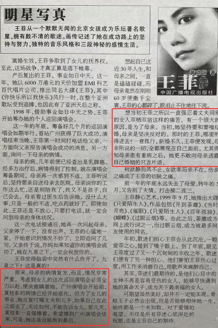 网上关于夏桂影的资料不多,王菲也鲜少提及家人,不过还是能从为数不多的资料以及夏桂影生前好友兼同事黑妮的讲述中了解到她的为人。