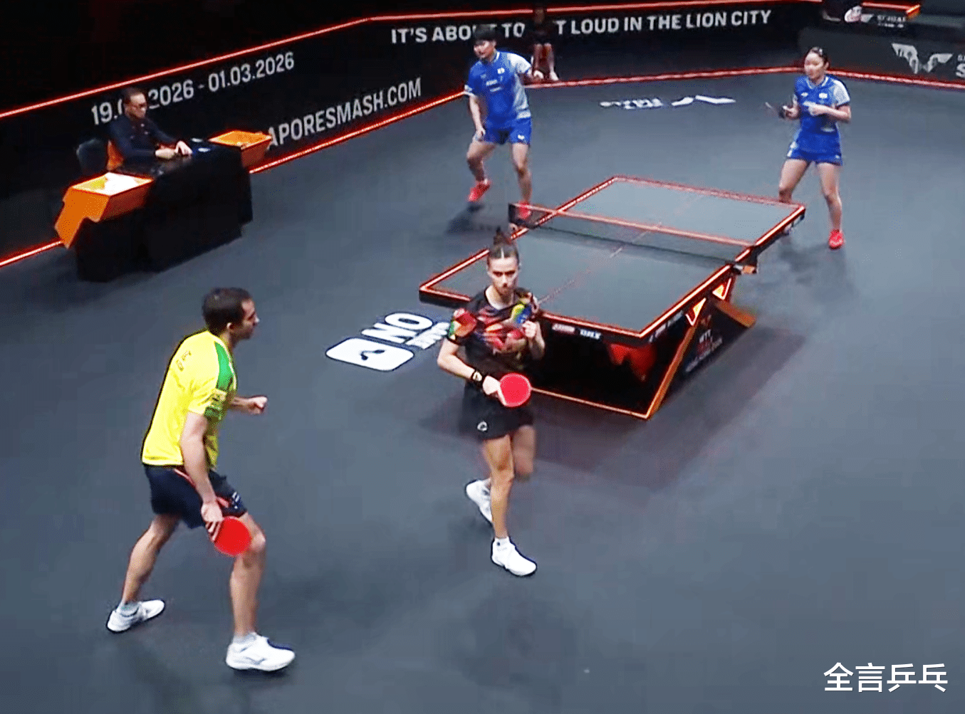 比赛开始后雨果/布鲁娜开局不利落后于人,松岛辉空/张本美和很快便以快打慢得手,在近台成功压制对方,随即以9-5、10-6领先拿到局点,紧接着擦网出现机会球后布鲁娜进攻失误丢分,最终日本组合以11-6成功拔得头筹。
