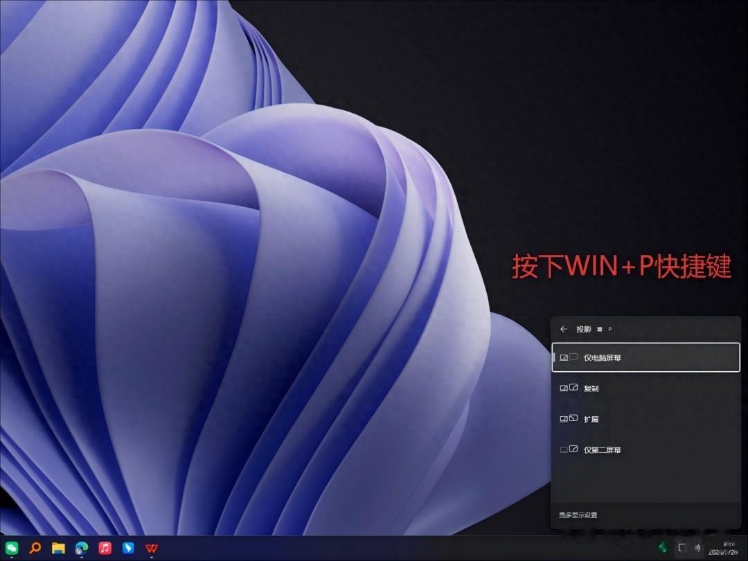 解决方式很简单:按下键盘上的 Win + P,会弹出一个投影选项菜单。