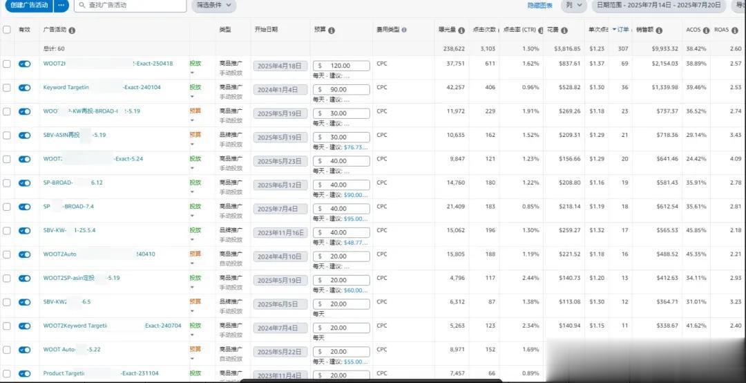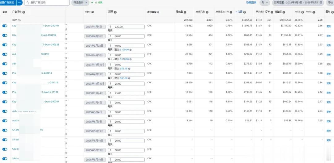 这波操作下来,广告单占比到50%左右。acos在38%左右。