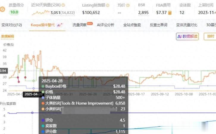 主力A变体:专享价28.98,利润率只有17%左右,B变体:售价32.99,相对主卖A变体来说,表现要好些。
