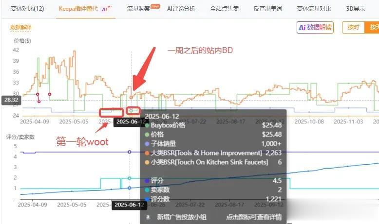 广告收预算、收出价,布局更多的流量词。B变体不参与WOOT,依旧是32.98的售价 ,广告也继续投放。