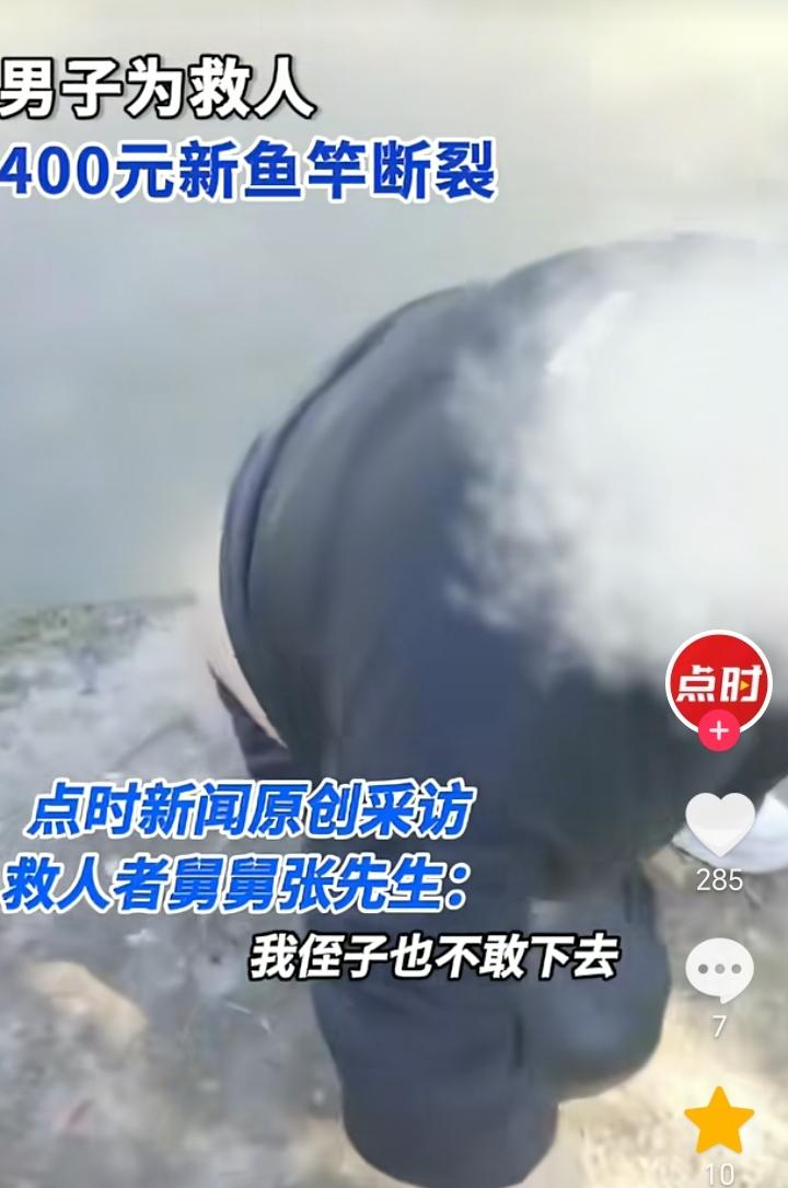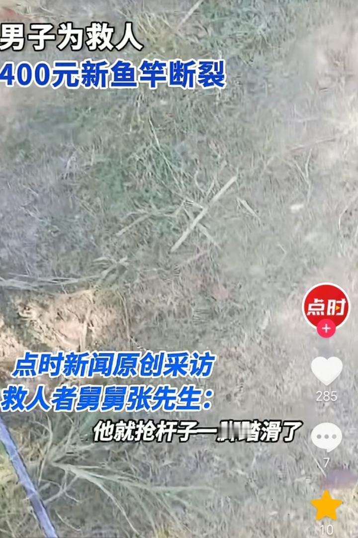 “竿子才值几个钱,救人最重要”!上海,男子拿着舅舅400元买的新鱼竿到河边钓鱼,因为救人鱼竿被损坏,男子担心舅舅责怪,打电话给舅舅解释情况。 原来是有人钓鱼结果鱼竿被鱼拽到了水里,为了抢鱼竿一脚踩滑了,男子看到后因为水深不敢下去,于是就用鱼竿把人救了上来,因为被救者有200来斤,鱼竿承受不住重量导致损坏,对方也表示会给赔鱼竿钱,男子担心舅舅责怪,于是就打电话告诉了舅舅,结果男子舅舅则表示竿子才值几个钱,救人最重要。 一句竿子才值几个钱,救人最重要,可以看出男子舅舅也是一个明事理有格局的人。 一根鱼竿能救一条人命也是物有所值,因为水深没有以身涉险,反而是利用工具进行救助,男子的做法也是非常明智的,至于鱼竿坏了可以再买,但是人的生命只有一次。 这也是给钓鱼爱好者提了醒,河边钓鱼一定要注意安全,鱼拽不上来哪怕竿子不要了,也千万不要以身涉险。