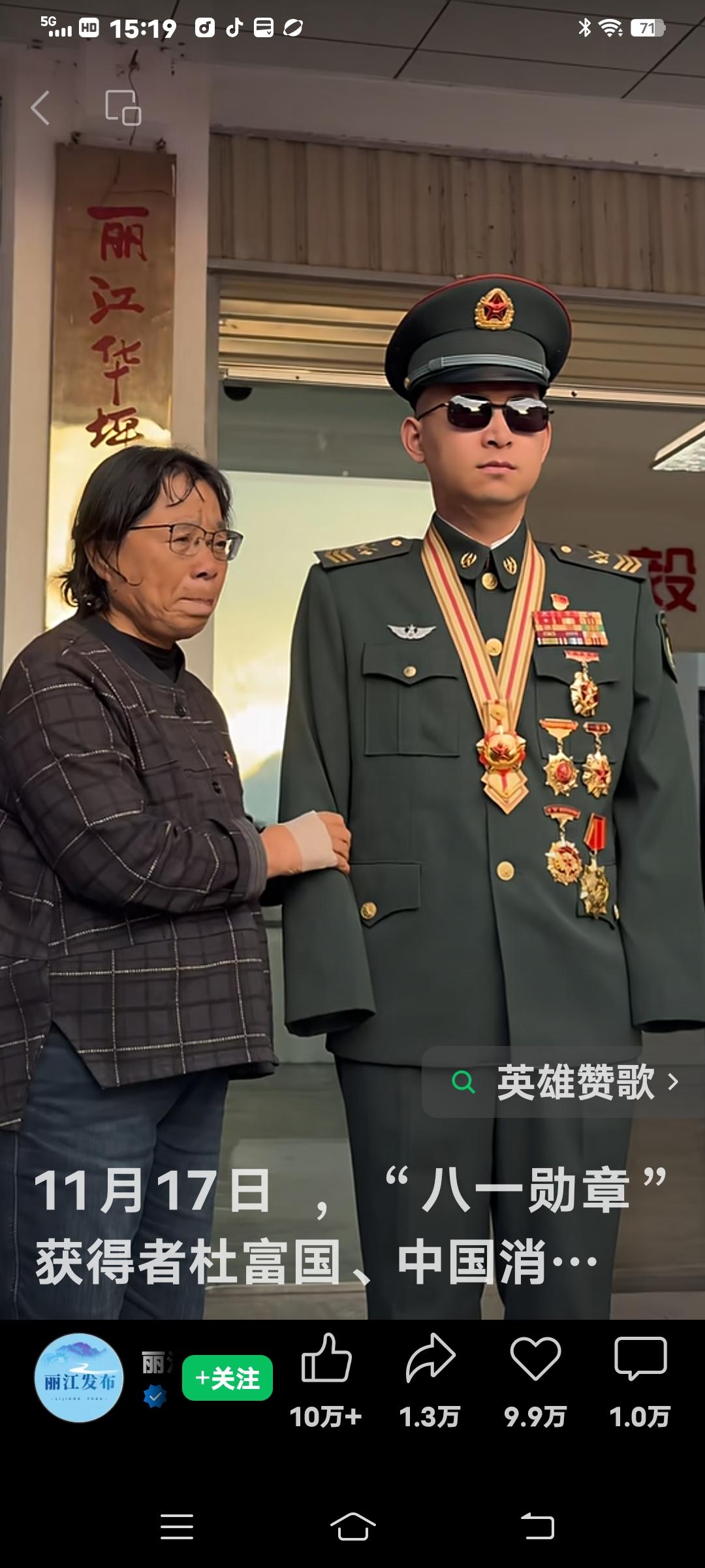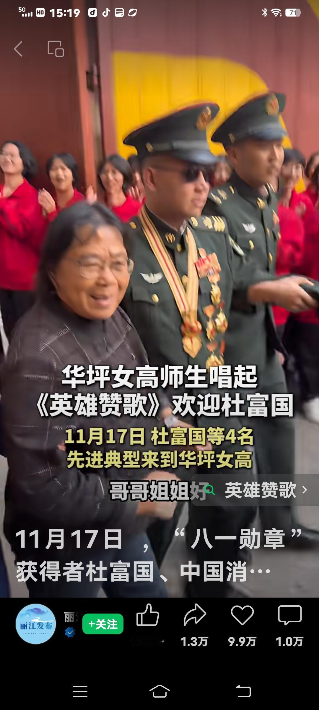 华坪女高唱英雄 11月17日 ,“八一勋章”获得者杜富国、中国消防忠诚卫士董永山、中国武警忠诚卫士扎巴、全国先进基层党组织独龙江边境派出所代表尹广丽等4位先进典型来到华坪女高,女高老校长张桂梅陪同,丽江华坪女高师生唱起《英雄赞歌》致敬英雄! 就在那一刻,整个校园弥漫着庄严肃穆的氛围,也让无数年轻的心灵为之一震。这不仅仅是一场简单的升旗仪式或歌唱表演,更是一场深刻的精神洗礼。学生们用稚嫩的嗓音唱出对英雄的崇敬,也唱出了对未来的责任感。这些“八一勋章”获得者、忠诚卫士们的事迹,像一股温暖而强大的力量,穿透了青少年的心扉,唤醒了他们心中那份沉睡已久的责任感和使命感。 英雄,从不只属于历史的长河,也存在于每一个平凡的日子里。他们或许身处最危险的岗位,或许默默无闻,却用实际行动诠释了什么是责任、勇气和信仰。杜富国用血肉之躯守护着祖国的边疆,董永山和扎巴用忠诚守护着人民的生命财产,尹广丽带领基层党组织扎根一线,用实际行动践行初心。这些故事,让我们看到,英雄的定义不只在于耀眼的荣誉,更在于日复一日的坚持与奉献。 而今天站在这里的师生们,也许会问:我能为国家做些什么?我能成为像他们那样的英雄吗?其实,每个人都可以。从身边的小事做起,从点滴的善意开始,也许我们无法像他们一样冲锋在前,但我们可以在自己的岗位上坚守责任,传递温暖,影响身边的人。正如那首歌里唱的:“英雄赞歌响彻云霄,英雄精神永不朽。”我们每一个普通人都可以成为自己生活中的英雄,只要心怀信念,勇敢前行。 这场仪式不仅仅是一场纪念,更是一场精神的传承。它提醒我们:英雄从不远离我们,他们存在于每一个坚守岗位、无私奉献的人身上。我们或许无法立刻成为“英雄”,但我们可以用行动去影响、去激励身边的人,让英雄的精神在平凡中发光发热。对于年轻一代而言,这不仅是一次深刻的洗礼,更是一份沉甸甸的责任。未来属于青年,属于那些愿意用行动书写新时代篇章的人。让我们以他们为榜样,携手共进,用实际行动续写“英雄赞歌”的永恒魅力!