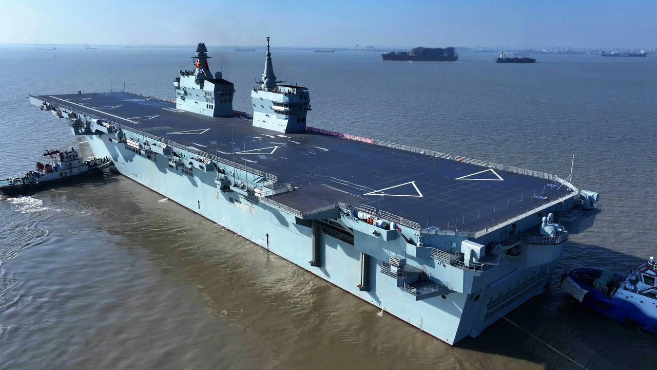 中国🇨🇳人民海军076型两栖攻击舰海试组图秀一波,满载排水量近5万吨,2025年11月14日海试,16日返港,预计2026年底服役,大家说说看该服役于哪支舰队? 四川两栖攻击舰