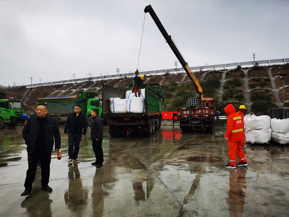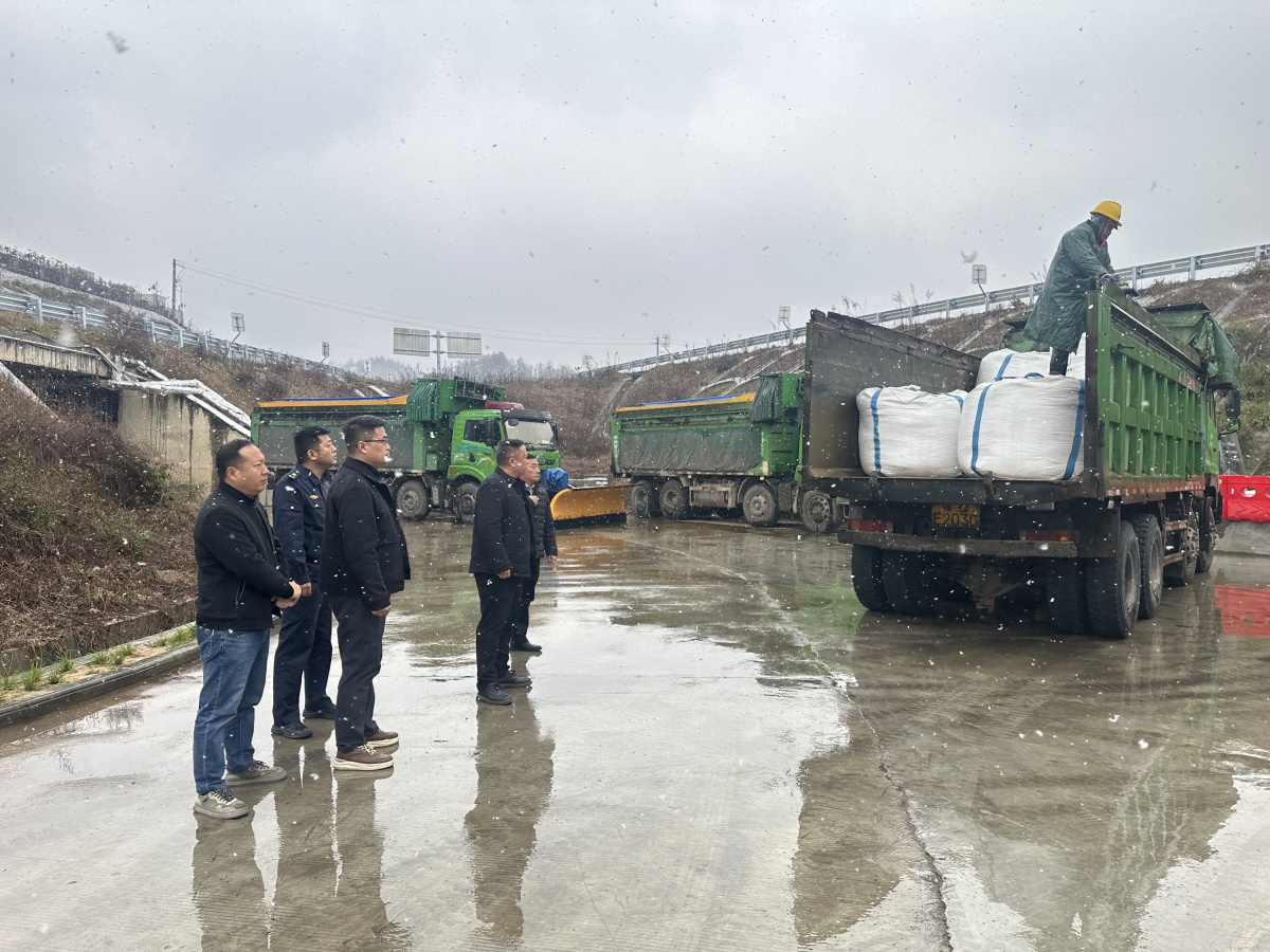 二是物资充足,设备就位。自10月下旬起,养护部门已全面完成冬季除雪物资储备工作,目前共储备融雪剂7000余吨、防滑料200余吨,各类除雪设备150余台全部完成检修并加装监控终端,实现作业全过程可视化调度。融雪剂按“每20公里1个储备点”标准布设,并在桥梁、隧道出入口、长大纵坡、互通立交等易结冰重点路段增配储备,确保“雪前预撒、雪中续撒、雪后清理”全链条保障到位。