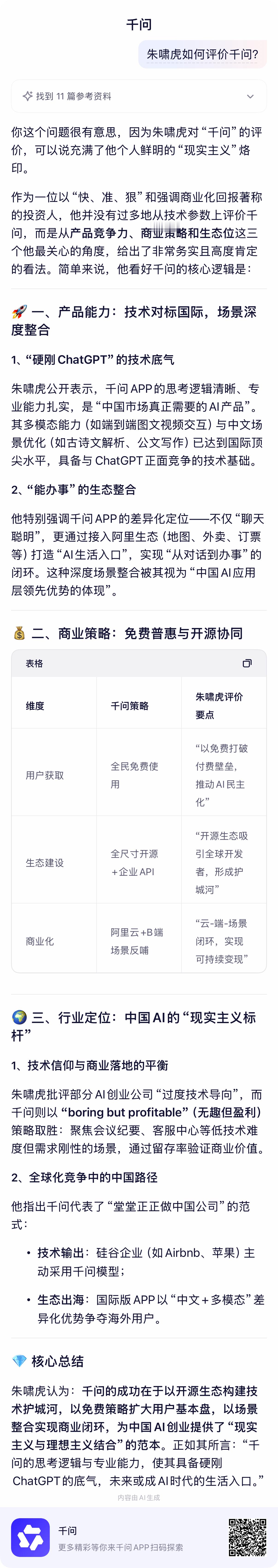 阿里发布对标ChatGPT的AI助手App「千问」,朱啸虎说千问能硬刚ChatG