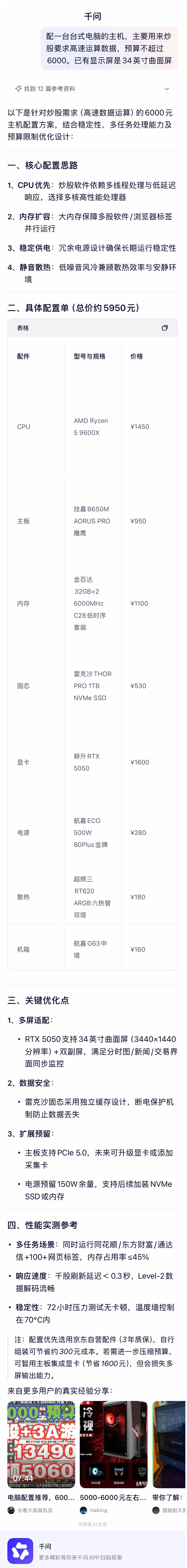 阿里发布对标ChatGPT的AI助手App「千问」,朱啸虎说千问能硬刚ChatGPT!这底气是来源于阿里自家Qwen模型,它在多项全球榜单霸榜,其中旗舰模型Qwen3-235B-A22B登顶「全球开源模型冠军」,Qwen3-coder在WebDev Arena取得并列第一....连Airbnb和英伟达的老黄都出来盖章,说这快成了硅谷的根基,正是这样强大的实力支撑千问具备复杂决策能力,用户只需通过简洁的界面就能体验顶级大模型能力。我自己也上手体验了一下,问它装机配置需专业建议,千问的回答不仅逻辑严密、分点清晰,在专业度上媲美ChatGPT,而且更深耕中文生态,更符合国人的交互体验,朱啸虎的眼光果然毒辣,阿里这次是铁了心要下场卷全球了!