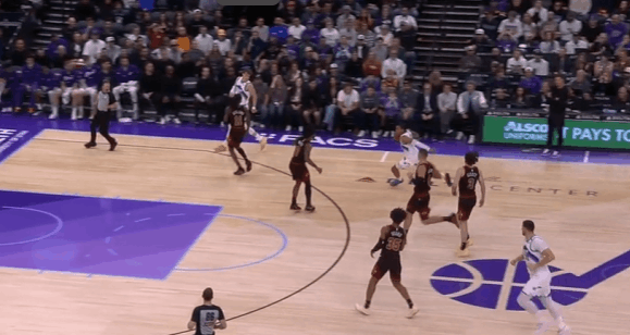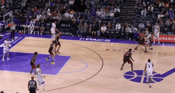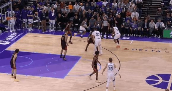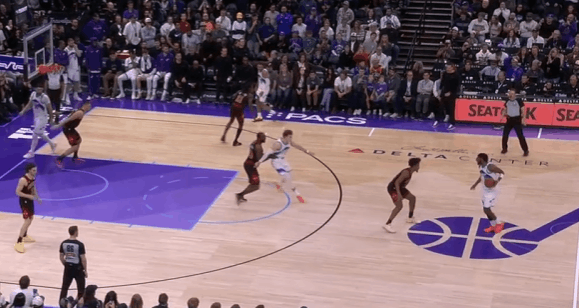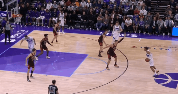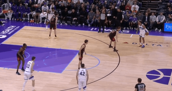 爵士观察:基扬特·乔治33+6+4,关键三分准绝杀乔治在生涯第三年展现出了进一步提升的趋势,进攻加产的同时效率相比上赛季也有所提高。场均得分从上赛季的16.8提升到21.3,助攻数也来到了7.1个。本赛季已经有6场比赛得到25+。在今天对阵公牛的比赛中砍下33分6助攻4抢断,还命中了关键三分完成准绝杀。图1持球推过半场后随即衔接弩机的“Drag掩护”配合,面对弩机的平延误佯装炸球衔接左路突破逼退防守人后,立即回拉出手撤步三分。图2持球过半场后立即给核心做球,执行“Middle Zoom“战术,马卡拖车跟进(Trailer)后早攻(Early Offense)阶段直接开展战术抓公牛立足未稳,借乐福无球掩护和乔治手递手后直接拔起就射。图3超高位置启动右路突破,靠速度摆脱赫尔特后左手上篮打进。图4和科利尔的“Flip”配合,面对换防直接左路突破摆脱埃格森左手上篮得手。图5佯装呼叫森萨博的掩护,小碎步衔接胯下启动左路突破摆脱赫尔特后,起跳空中对抗直接撞飞了前来协防的杰伦史密斯,打进2+1。图6转换进攻炸球后直接撩起手臂合球起步抛投得手。图7接科利尔手递手后佯装与弩机衔接挡拆配合,实则直接拒绝掩护胯下启动右路突破,看到篮下沉退的武器后再衔接横撤步跳投。图8要到武器错位后跳步犹豫佯装左路突破逼退武器,随后立即回拉出手持球三分。图9,3.6秒作为第二进攻选择上前与科利尔进行手递手配合,接球后立即出手三分,手起刀落150-147准绝杀——只留给对手0.8秒。