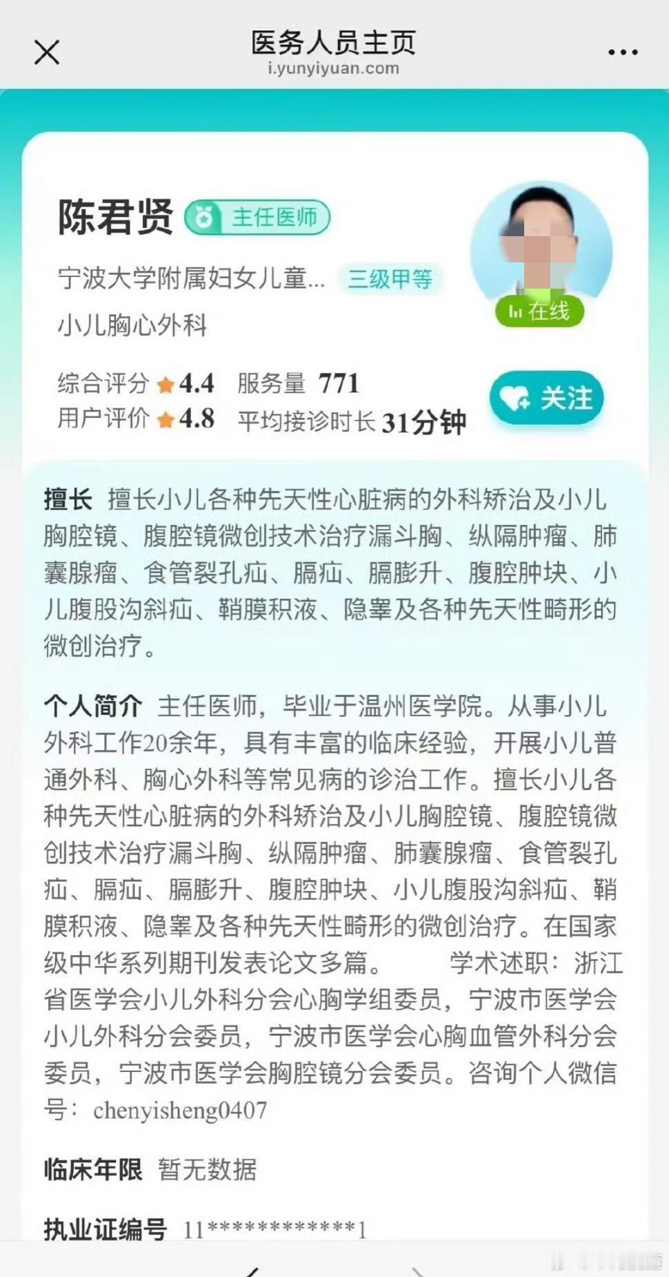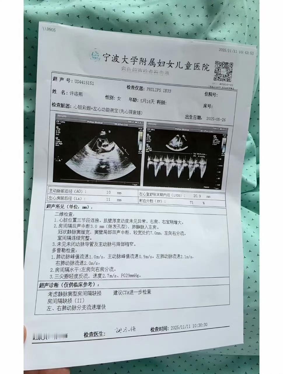 难道医生“杀人”难道就不用偿命了吗? 近日,浙江宁波 5月龄早产女婴许洛熙,在常规检查中发现心脏存在两处房间隔缺损(3mm继发孔型、7mm冠状静脉窦型),而发育指标正常且无症状。 家属认为存在自愈的可能性,而本次事件的“罪魁祸首”主刀医生陈贤君(宁波大学附属妇女儿童医院心脏科主任)以“影响肺功能和大脑发育”为由坚持手术,并承诺手术为“低风险微创”,耗时2.5-3小时,风险率仅1/200。 而随后手术实际全麻时长达7小时12分钟,总耗时近9小时(远超术前沟通)。术中因动脉破裂大出血(失血量约1500ml),被迫转为开胸二次手术,但全程未告知家属。术后推出手术室时,患儿“全身发紫、眼角含泪、插满管子”,医生却称“手术成功”。患儿转入PICU后已生命垂危,院方承诺调上海专家会诊却并未兑现,于是在 22:03宣告其死亡。 并且还有网友举报改名主任医生在 2025年6月曾导致一名1岁患儿同类型手术死亡,纠纷却被院方压下。 虽然目前该医院宣布涉事医生已经停诊,但是陈贤君作为医院心脏科主任,本科毕业于温州医学院,从事小儿外科20余年,为什么会接二连三在这个手术上“草菅人命”。其中原因到底是什么? 很难想象经此事件的家庭将面临多大的伤痛,其中本次事件的母亲更是已经 34 岁,有这个宝宝可谓是来之不易,我们家里也是有孩子的,有宝宝的,如果对这件事情置之不理,无异于助长了“杀人凶手”的嚣张气焰,一定要还这位宝宝一个公道!