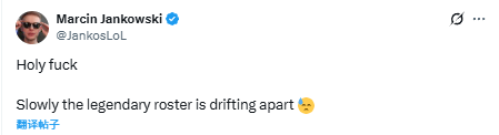 T1官宣Guma离队后,Jankos发文:传奇阵容正在慢慢分崩离析