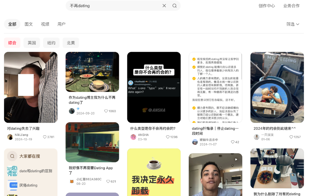 比如,在恋爱市场中,老派男友重新成为香饽饽,也是因为他们有着真诚和务实的特点。而在社媒上,一些女生也开始掀起了一次删除Dating软件的运动。