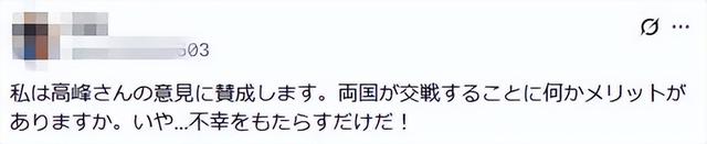 “我赞成高峰先生的观点。两国交战有什么好处吗?不......只会带来不幸!”↑