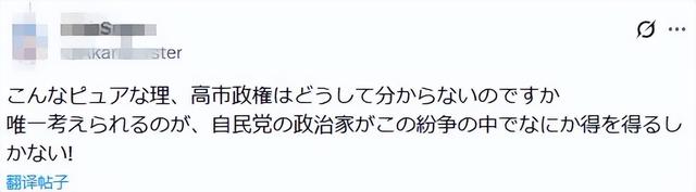 “这么简单的道理,高市政权为什么就不明白呢?唯一能想到的就是,自民党的政客们想从这场冲突中获利!”↑
