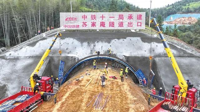 作为长赣高铁湖南段最长隧道的苏家庵隧道,目前已基本完成导向墙施工,预计11月下旬完成管棚施工,正式进入暗洞施工阶段。