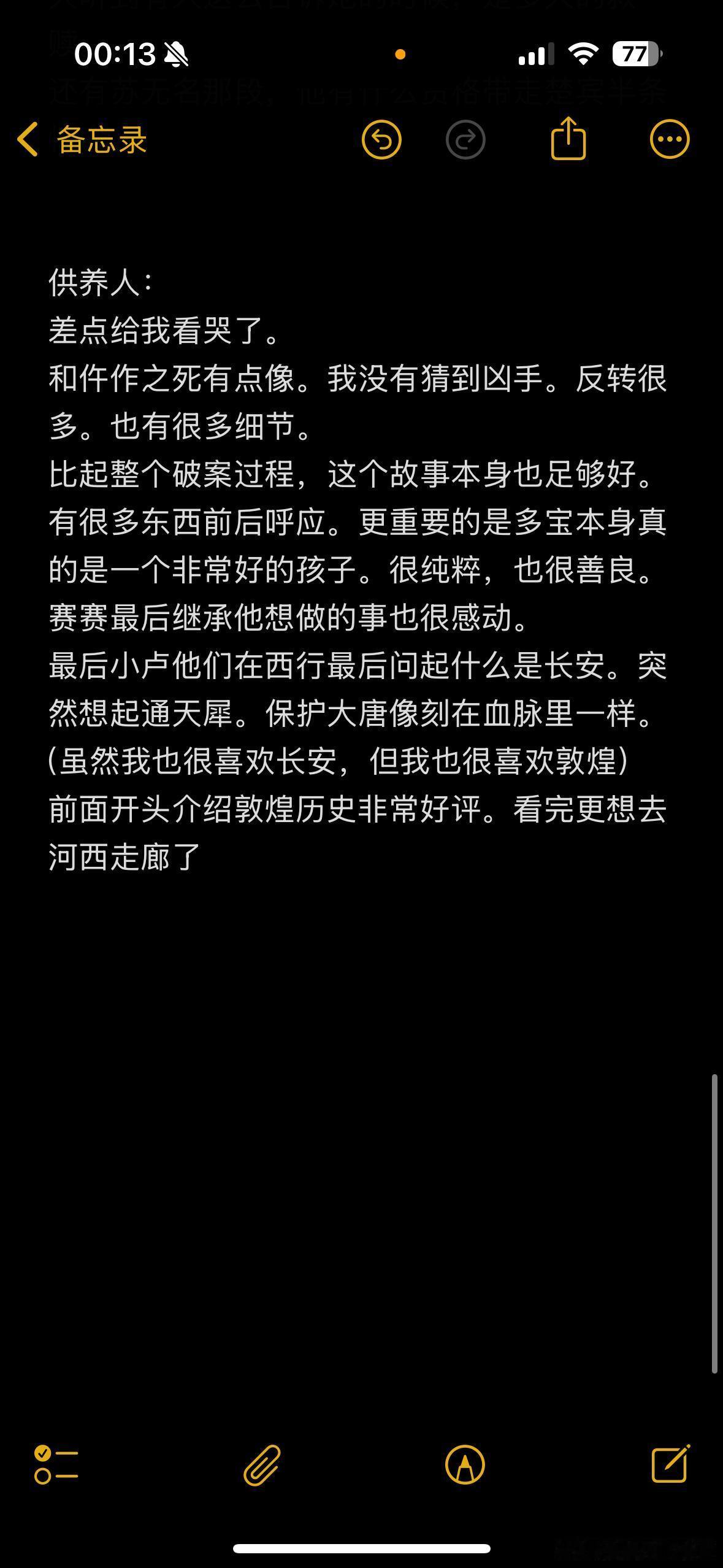 唐诡2案件排名(含微剧透)最喜欢两个单元是仵作之死和供养人。第一季最喜欢众生堂。供养人刚看完,词穷了总之就是差点哭了。我本身也很喜欢河西走廊,所以西行很对我胃口。第一部我也很喜欢。下次去敦煌之前我要重新看一下最后这一单元。以及其实我挺喜欢他上价值的。我会永远为家国情怀感动。也很喜欢在电视剧里听到一些历史相关的内容。比如介绍莫高窟的来历唐朝诡事录‖