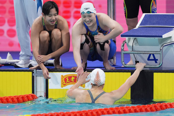 在之后的女子50米自由泳决赛中,浙江小将吴卿风以24秒21的成绩夺冠,为浙江游泳队再添一金。