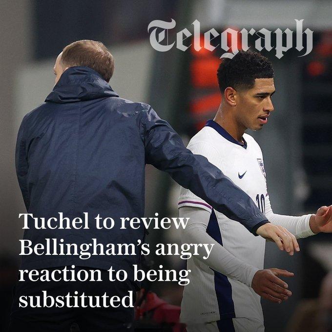 【图赫尔批评贝林厄姆】英格兰主帅图赫尔:“我看到贝林厄姆被换下时很不高兴的行为!我不想小题大做,但我坚持我的观点,行为举止至关重要,要尊重替补上场的队友,我们不会因为有人挥舞手臂就改变我们的决定。(换人)决定已经做出,作为球员,你必须接受。”