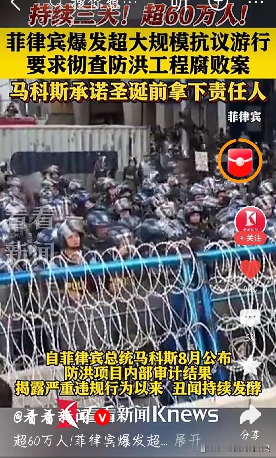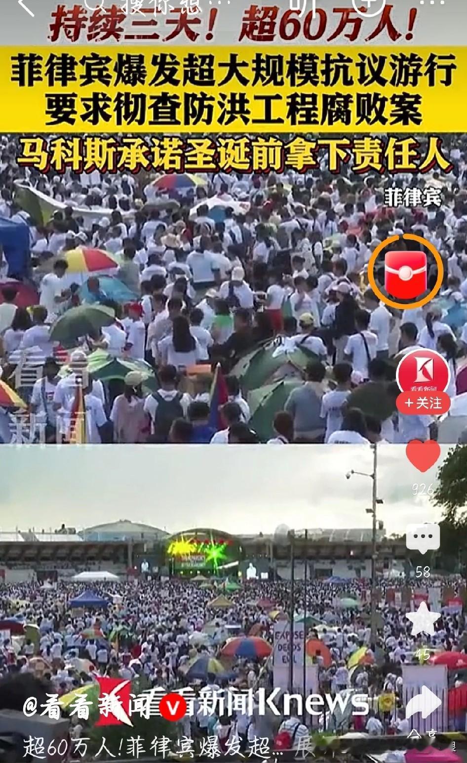 菲律宾这波游行太炸了!65万人涌上马尼拉街头,全国多个城市跟着响应,连总统府前都乱成一团。 说白了就是老百姓忍够了!政府花大价钱搞防洪工程,结果全是“幽灵项目”——要么是豆腐渣,要么压根没开工,几十亿美元的公款全被官员和老板们私吞了。台风一来洪水照样淹,家园冲了、人受灾,贪污的钱却不见踪影。 调查搞了快一百天,没一个人坐牢,这换谁能不气?年轻人带头冲在前头,和警方冲突不断,催泪瓦斯、燃烧瓶都用上了。总统说圣诞节前严惩贪官,可民众早就不信口头承诺了。 一边是国内民怨沸腾,一边还忙着在国际上挑事,菲律宾政府到底该先顾哪头?这么明目张胆的腐败,不彻底清查怎么能平息众怒?菲律宾风波 菲律宾爆乱菲律宾暴动 菲律宾腐败问题为何如此严重 马尼拉 菲律宾持续爆发超大规模游行 菲律宾发展到什么程度 图片截图于看看新闻