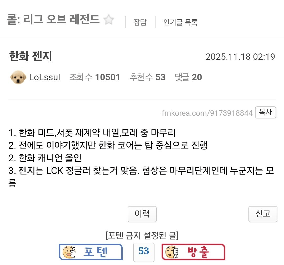 虎扑11月18日讯2025赛季转会期即将开启,曾在11月12日爆料T1续约Doran、接触Peyz的韩网小道昨晚凌晨发文,原文翻译如下:
