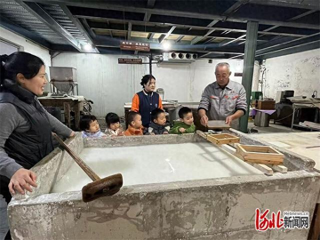 水彩纸上,你一笔我一画,稚嫩的小手涂下心中最美的色彩;手抄纸水槽边,小心翼翼地手持筛网盛满纸浆,体验“古法”造纸的神奇……11月13日,保定市竞秀区的宝虹艺术博物馆里,一群幼儿园小朋友正在进行纸文化研学。古法造纸、剪纸、拓印等一项项非遗技艺,在孩子们的指尖触碰中焕发生机。
