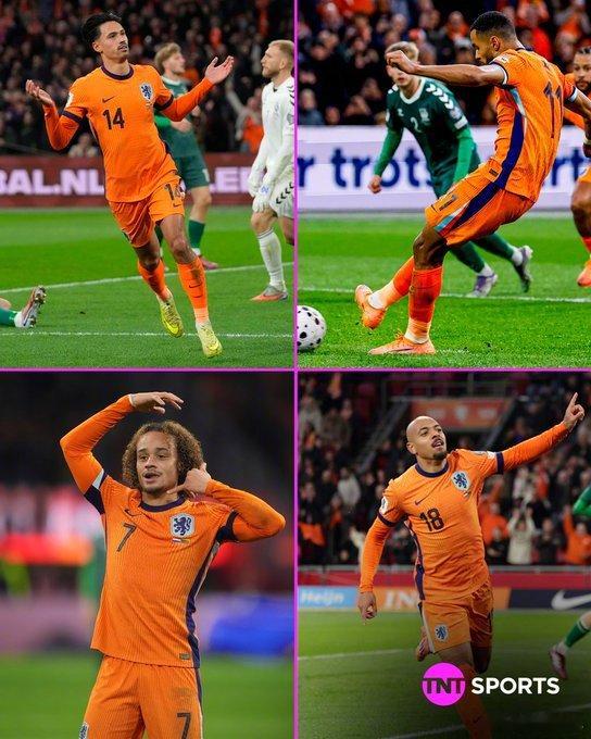 【荷兰进球,来自英超】 ,4名进球的球员全部来自英超,分别是效力曼城的赖因德斯,效力利物浦的加克波,效力热刺的哈维-西蒙斯和效力阿斯顿维拉的马伦!