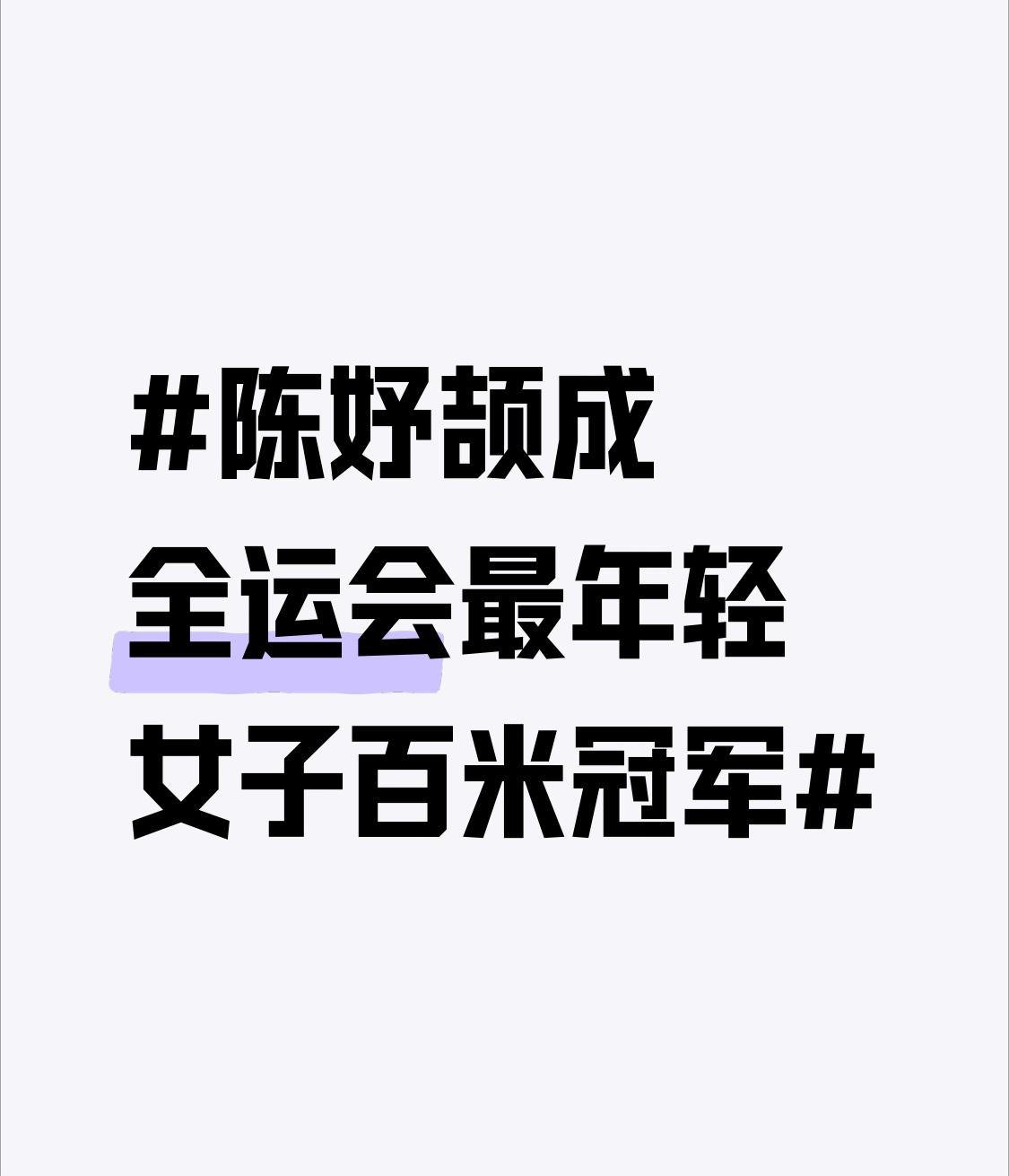 陈妤颉成全运会最年轻女子百米冠军 17日晚十五运会女子100米决赛太让人惊喜了!16岁的浙江小将陈妤颉以11秒10的成绩打破亚洲青年纪录夺冠,成了全运会历史上最年轻的女子100米冠军。这位来自浙江宁波的“小孩姐”,简直是“纪录收割机”。 第一届学青会她就拿下中学组女子100米和200米两枚金牌,2024年更是多次破纪录。2025钻石联赛厦门站她还刷新女子200米亚洲少年(U18)纪录。才16岁就这么牛,未来可期!陈妤颉说热爱田径是她唯一确定的事,期待她继续创造更多奇迹!
