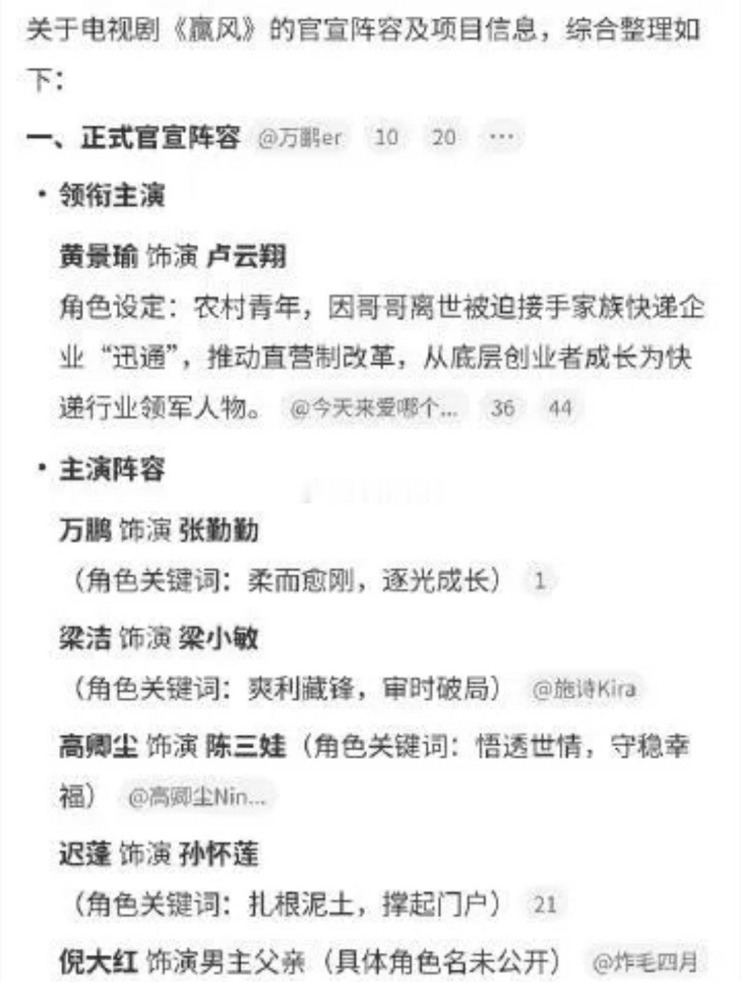 黄景瑜与万鹏主演的新剧《赢风》正式开机,两位都是兼具实力与观众缘的演员,再加上国民度超高的老戏骨倪大红加盟,阵容一亮相就让人期待值拉满。更值得关注的是幕后班底——由赵冬苓担任编剧、臧溪川执导,两位都是业内公认的品质保障。有这样的创作团队坐镇,这部年代创业剧想必能精准拿捏时代质感与人物群像,无论是奋斗中的热血还是生活里的烟火气,都让人觉得“对味儿”。期待这部剧能在时代浪潮的背景下,讲好一群人敢闯敢拼的创业故事。