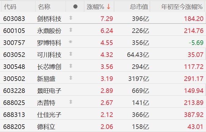 格隆汇11月18日|A股市场CPO概念股反弹,其中,剑桥科技涨超7%,永鼎股份涨超6%,罗博特科、可川科技涨超4%,长芯博创、新易盛涨超3%。