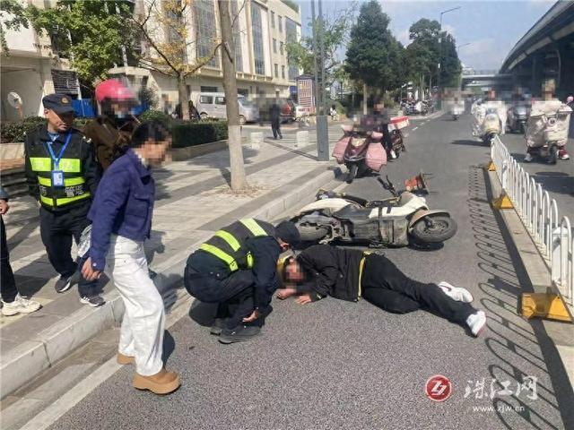 近日,紫云路紫金新景园旁,一位美团外卖员在骑行途中,不慎撞上了隔离带,瞬间的失衡让他重重摔倒在地,身体一时动弹不得,情况显得格外紧急。
