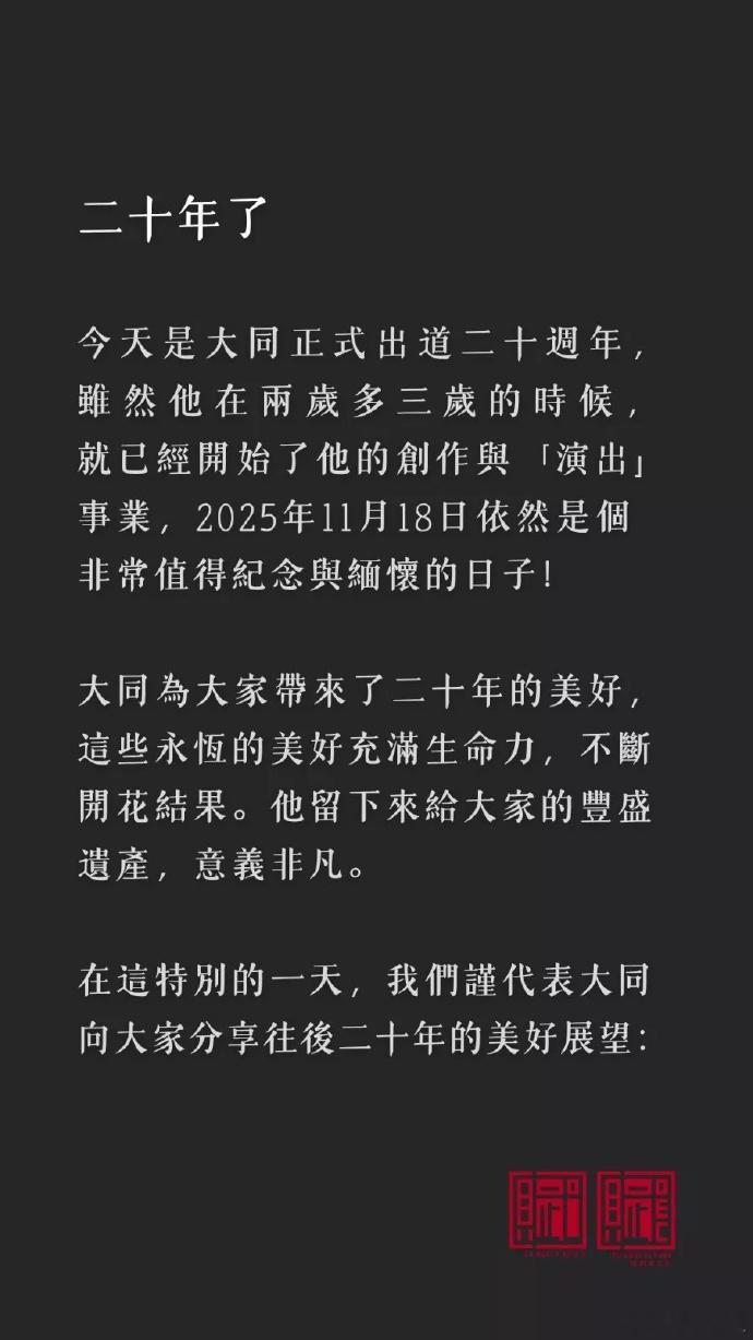18日, 公布方大同出道20周年计划,“梦想家”2027年开幕、方妈妈继续完成大