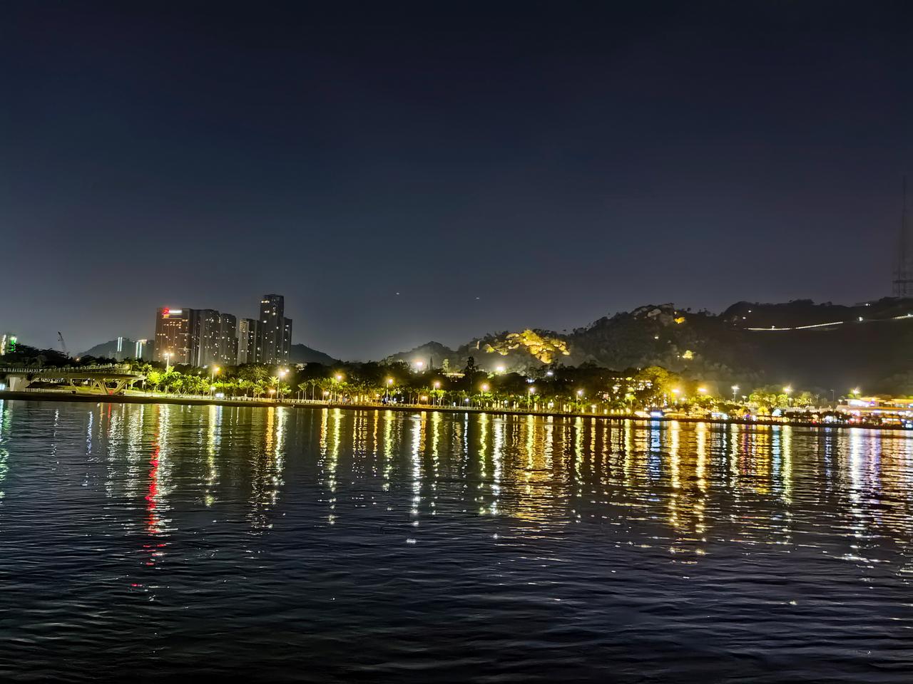 珠海的夜景融合了海滨风光与城市灯火,海滩上的美女雕塑叫“珠海渔女”,是珠海的城市标志。夜晚的珠海渔女更显得娇媚动人。 该雕塑由潘鹤于1982年创作,渔女领戴珍珠,双手高擎明珠,形象源自当地爱情传说,预示着向人类奉献珍宝,向世界昭示光明