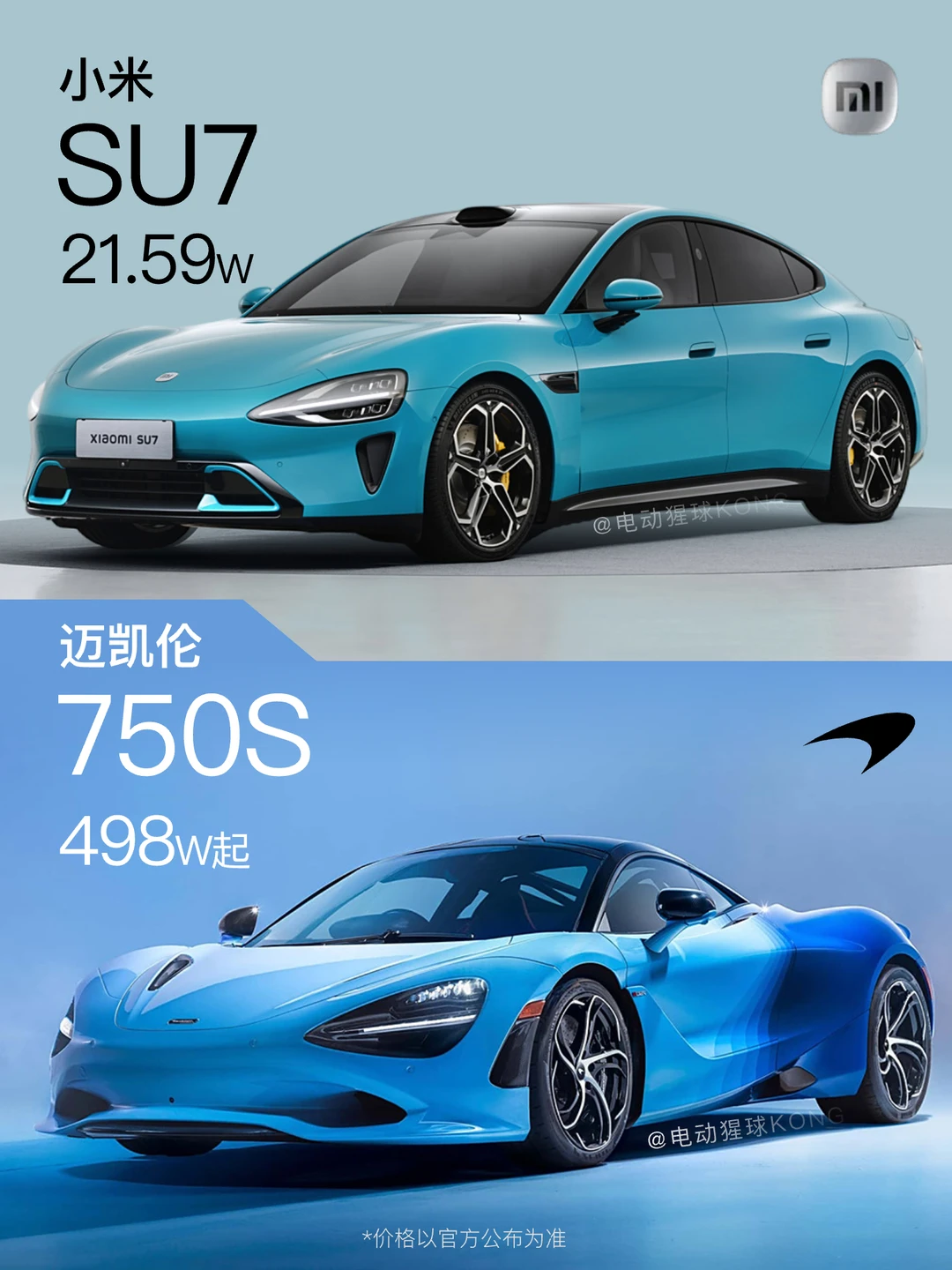 小米SUV确定是十字大灯,布加迪Bolide也有类似设计,再看SU7的大灯,网友说致敬了迈凯轮750S,不过话说回来,谁会介意自己老婆长得像刘yi菲呢,手握一个小目标,你会怎么选?